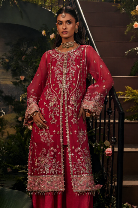 Deep Ruby Embroidered Formal Kurta Set