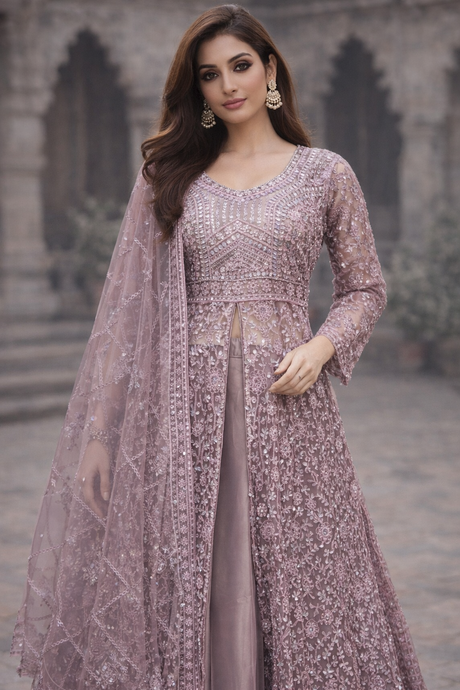 Blush Champagne Embellished Lehenga with Long Sequin Jacket