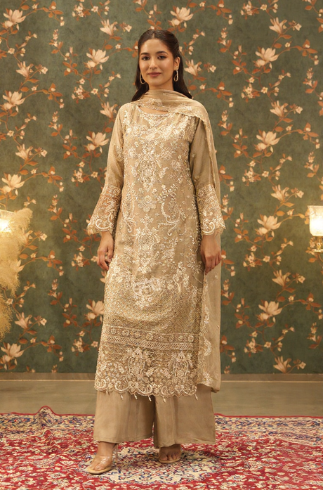 Ivory Floral Embroidered Straight Kurta Palazzo Dupatta Set |Label S4U