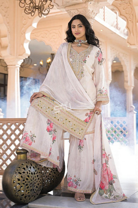 Champagne Beige Palazzo Co-Ord Set – Embellished Jacket Look |Label S4U