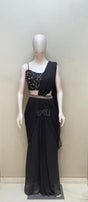black saree set, pre-draped saree, modern ethnic wear, S4U black party outfit
