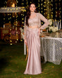 • Blush champagne draped saree crafted in fluid, lightweight fabric