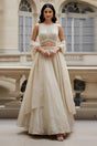 • Ivory lehenga crafted in lightweight fabric with a soft, flowing drape