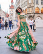 • Emerald green lehenga with floral print and sequin illumination