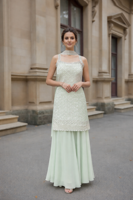 Pistachio Embroidered Sharara Set