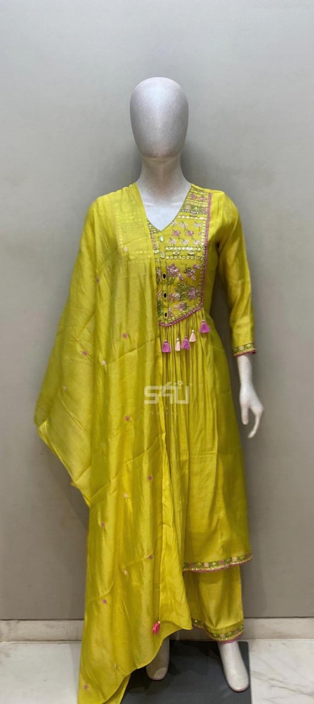 Lime Yellow Kurta Set with Dupatta | Label S4U