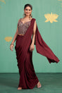 Wine Mirror Embroidered Saree Gown – Luxe Drape with Contemporary Charm