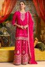 fuchsia sharara, pink festive wear, elegant Indian outfit, hand-crafted suit, wedding sharara set, luxury ethnic style