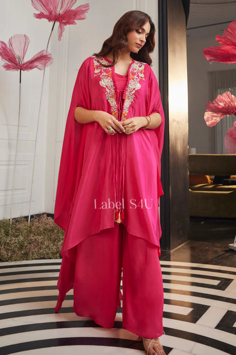 Deep Pink Palazzo Suit with Handcrafted Detailing |Label S4U