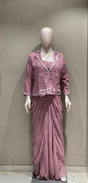 mauve draped set, pastel outfit, jacket and skirt, hand-crafted mauve dress, luxury ethnic outfit, modern festive wear