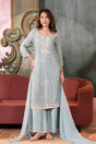 Graceful, serene, and beautifully detailed, the Sage Pearl Embroidered Kurta Palazzo Set captures timeless elegance with a modern sensibility. The soft sage kurta is adorned with intricate pearl and thread embroidery arranged in refined geometric and floral patterns, lending a subtle shimmer throughout. Paired with fluid palazzo pants and a matching sheer dupatta that drapes effortlessly, this ensemble offers understated luxury ideal for festive celebrations, intimate weddings, and refined day-to-evening events.