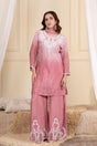Soft, graceful, and effortlessly elegant, the Dusty Rose Embroidered Kurta Set is a beautiful blend of subtle charm and refined craftsmanship. Rendered in a muted dusty rose hue, the kurta features delicate white embroidery along the neckline and scattered motifs that add a touch of understated sophistication. The flowing palazzo pants mirror this artistry with intricate detailing at the hem, creating a harmonious and balanced silhouette. Paired with a lightweight dupatta, this ensemble is perfect for intimate gatherings, festive occasions, and serene daytime celebrations where simplicity meets elegance. | LabelS4U