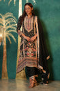 Indulge in the royal allure of this Midnight Black Mughal-Inspired 3-Piece Suit, an ensemble that blends tradition and luxury in perfect harmony. This set captures the grandeur of Mughal artistry with its intricate paisley, vine, and medallion embroidery in rich tones of gold, fuchsia, and olive — a truly luxurious color palette.