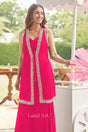 Rani Pink Sharara, Mirror Work Jacket, Thread Embroidered Sharara Set, Georgette Sharara, Haldi Outfit, Modern Mehndi Look, Designer Indian Wear, Sangeet Ethnic Wear, Traditional Wedding Set, Mirror Embroidered Jacket, Ethnic Contemporary Wear, Indian Fusion Outfit, Summer Wedding Outfit