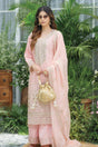Romantic and refined, this blush pink suit set radiates soft femininity through intricate hand-crafted embellishments. Paired with a sheer dupatta, it’s the perfect ensemble for garden festivities or daytime celebrations.