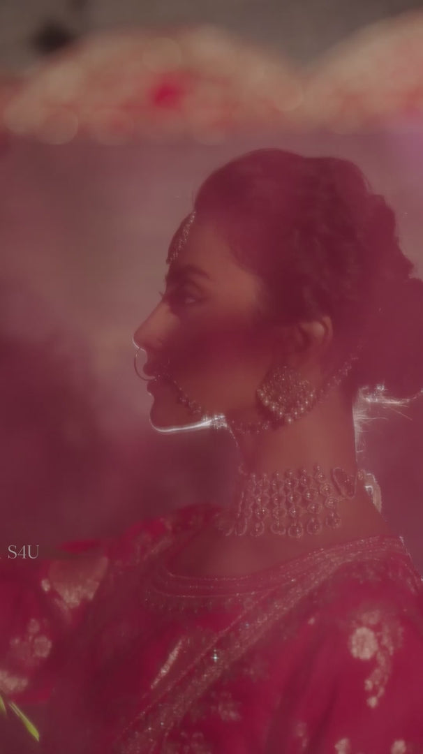 Rich, radiant, and undeniably regal, the Crimson Rose Embroidered Festive Suit is designed to make a striking impression. The vibrant crimson base is beautifully adorned with intricate gold embroidery and traditional motifs, creating a luxurious statement perfect for grand celebrations. Paired with coordinated trousers and a flowing dupatta, this ensemble blends heritage craftsmanship with timeless elegance.