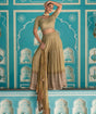 Radiant, modern, and effortlessly glamorous, the Gold Pleated Palazzo Set is a luminous celebration of contemporary elegance. Drenched in a rich metallic gold hue, the ensemble features a finely textured blouse that shimmers with subtle brilliance, perfectly complementing the fluidity of the pleated palazzos. The intricate woven patterns and detailed borders add depth and artistry, while the soft dupatta completes the look with graceful movement. Ideal for festive evenings, cocktail gatherings, and statement celebrations, this ensemble exudes bold sophistication with timeless charm.