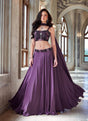 Bold, elegant, and irresistibly dramatic, the Plum Embellished Cape Lehenga Set is a striking expression of contemporary Indian couture. Drenched in a rich plum hue, this ensemble features a heavily embellished crop blouse paired with a fluid, high-waisted lehenga skirt that flows effortlessly with every step. The look is elevated with a sheer cape-style drape that adds movement, depth, and a modern edge. Designed for women who love statement silhouettes, this lehenga set is perfect for glamorous evenings and elevated celebrations.