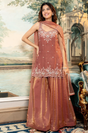 Rust Rose Embroidered Kurta with Shimmer Sharara Set