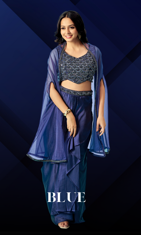 Navy Blue Lehenga with Cape Blouse | Label S4U