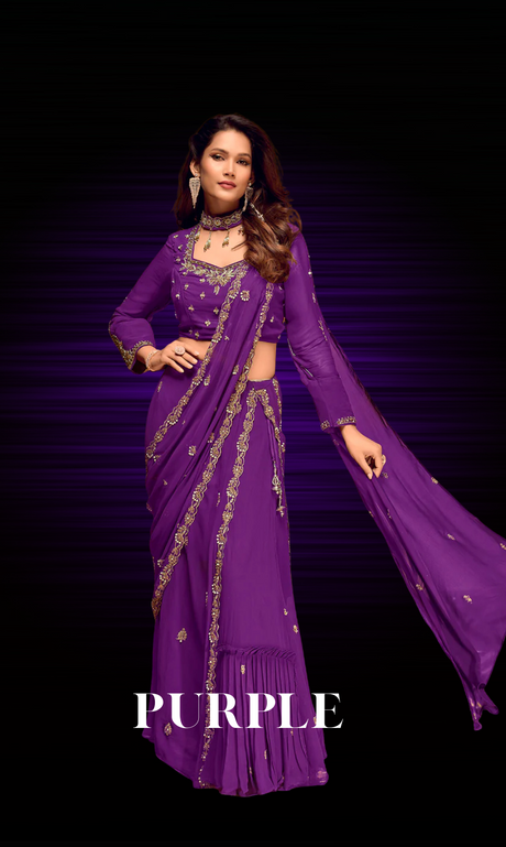 Royal Plum Embellished Drape skirt with choli and jacket - Label S4U