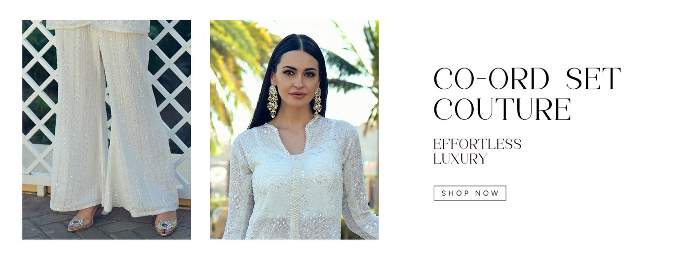 Champagne Beige Palazzo Co-Ord Set – Embellished Jacket Look |Label S4U