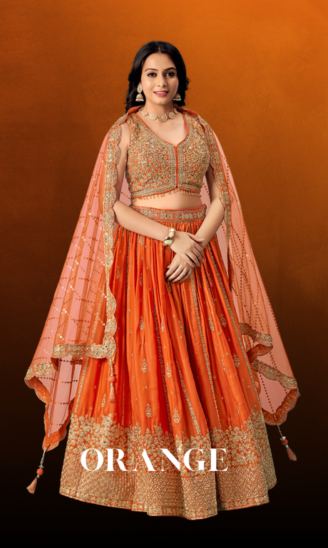 Tangerine Mirror Embroidered Lehenga Skirt Set – Vibrant Fusion of Energy and Elegance