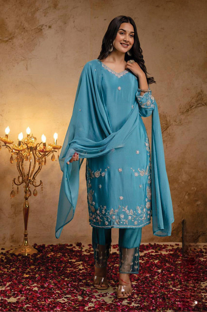 Royal Blue Hand-Crafted Palazzo Set with Dupatta | Label S4U