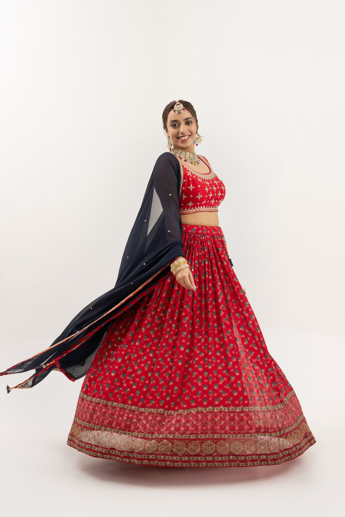 Elegant Red Embroidered Mermaid Lehenga Set – Designer Party & Wedding Wear